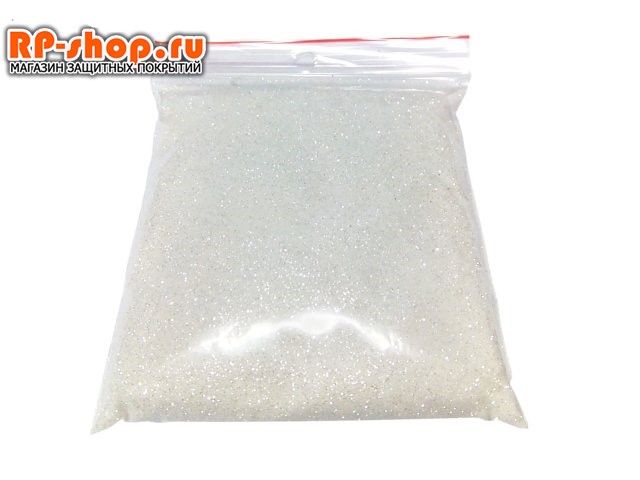 Белый глиттер размер зерна 0.2 мм вес 0.02 кг. Можно добавлять в любое покрытие.