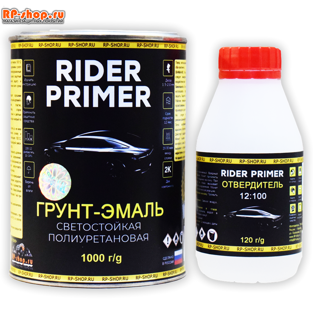 Двухкомпонентый полиуретановый грунт-эмаль для металла автомобиля Rider Primer А+Б (1000 гр.+100 гр.)